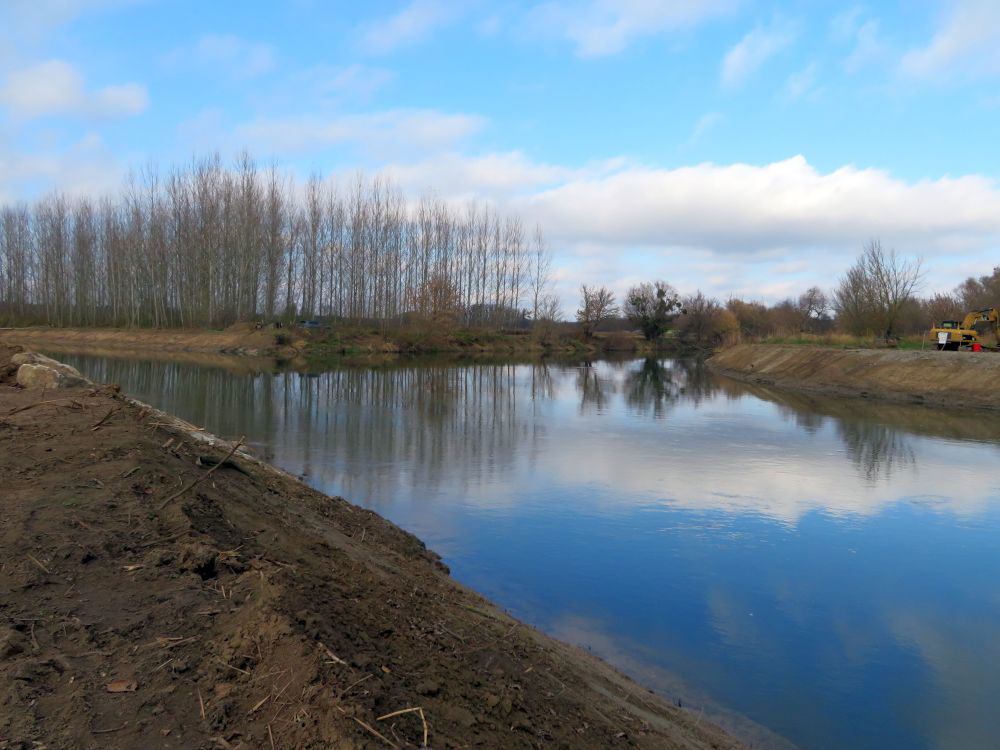 Nach einer bereits fertiggestellten Schlinge (Mäander) zweigen wir zum Fluss hinüber.