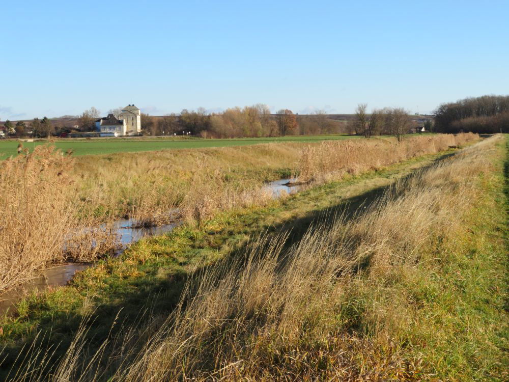 Danach marschiere ich entlang dem Fluss nach Prinzendorf hinüber.