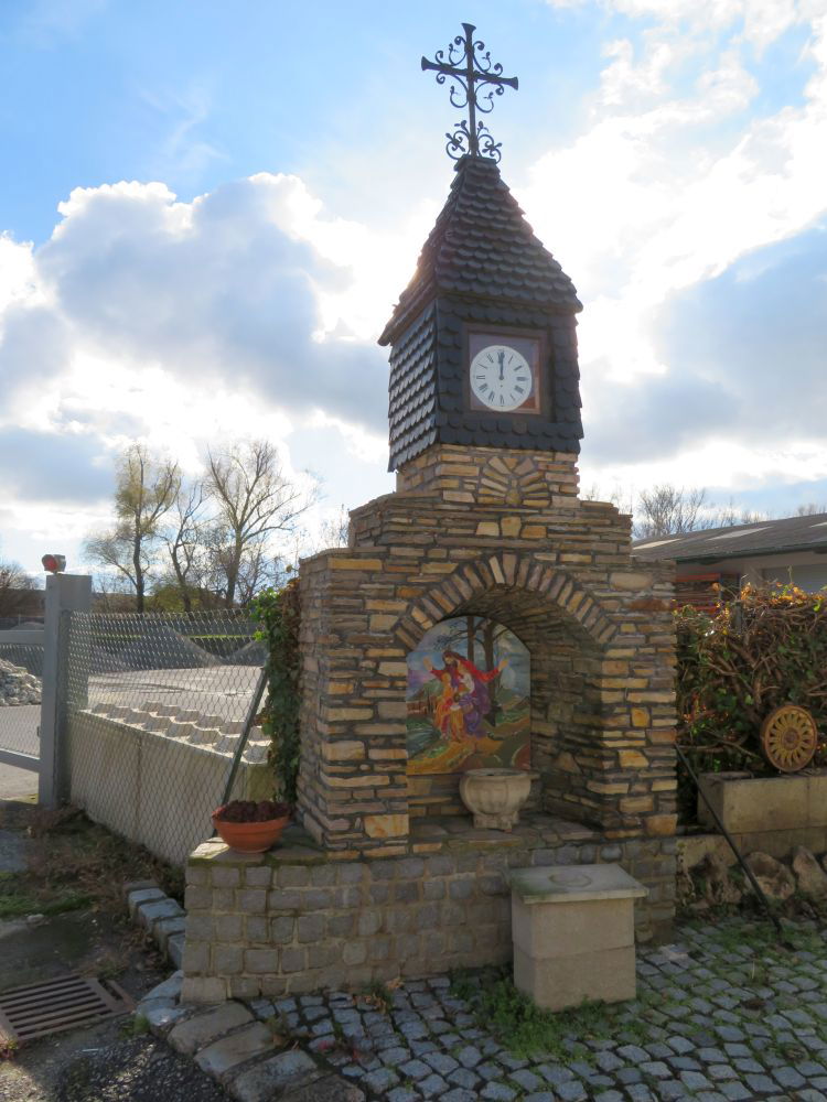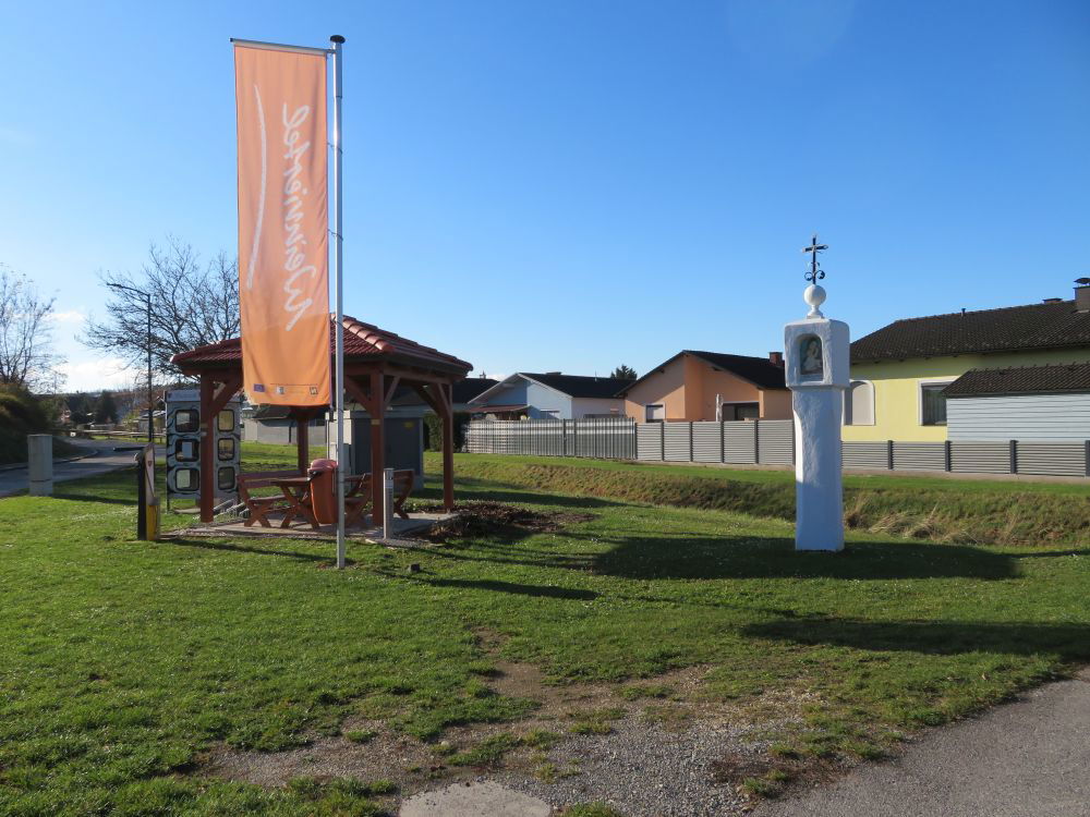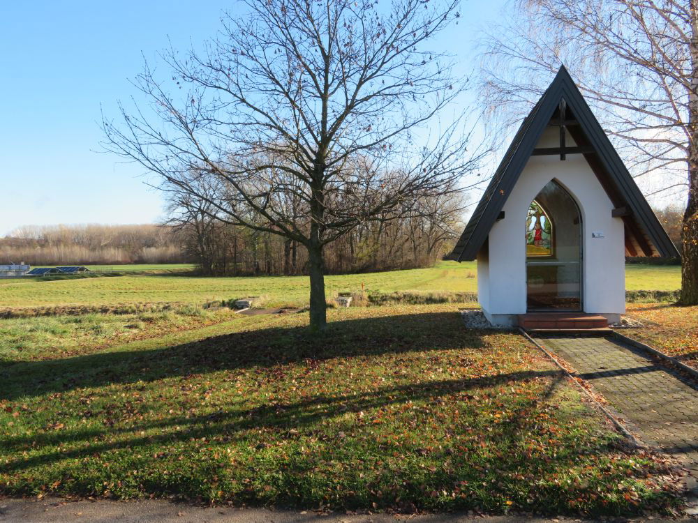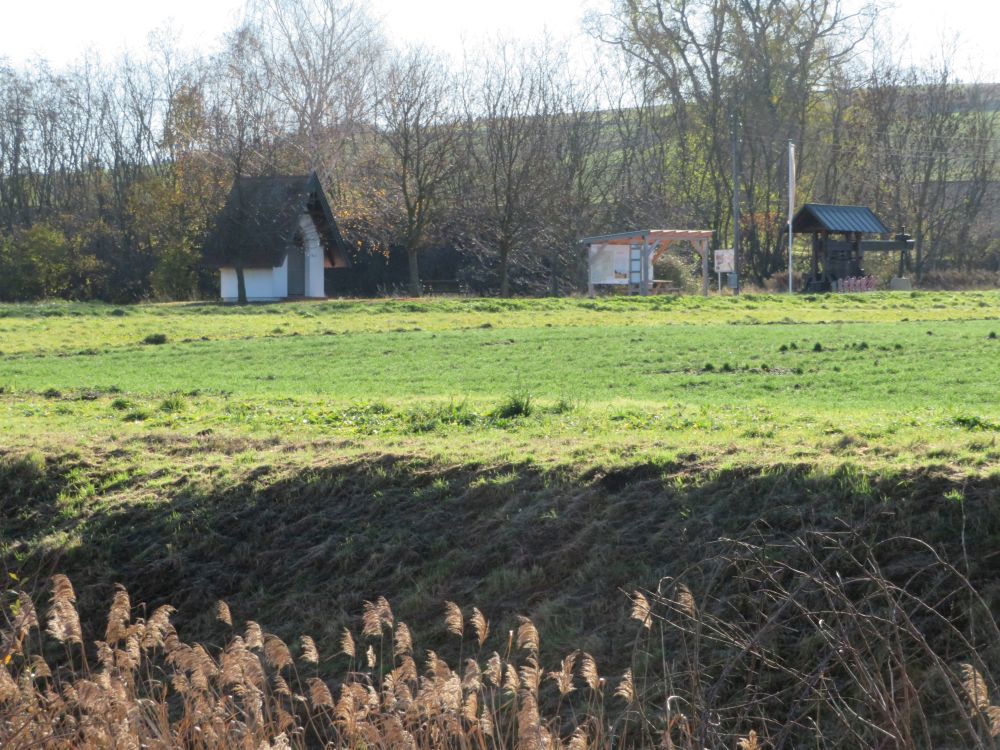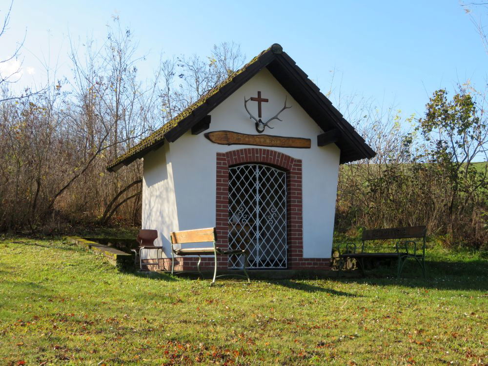 Blick zur Hubertuskapelle und der Radlerrast gegenüber: