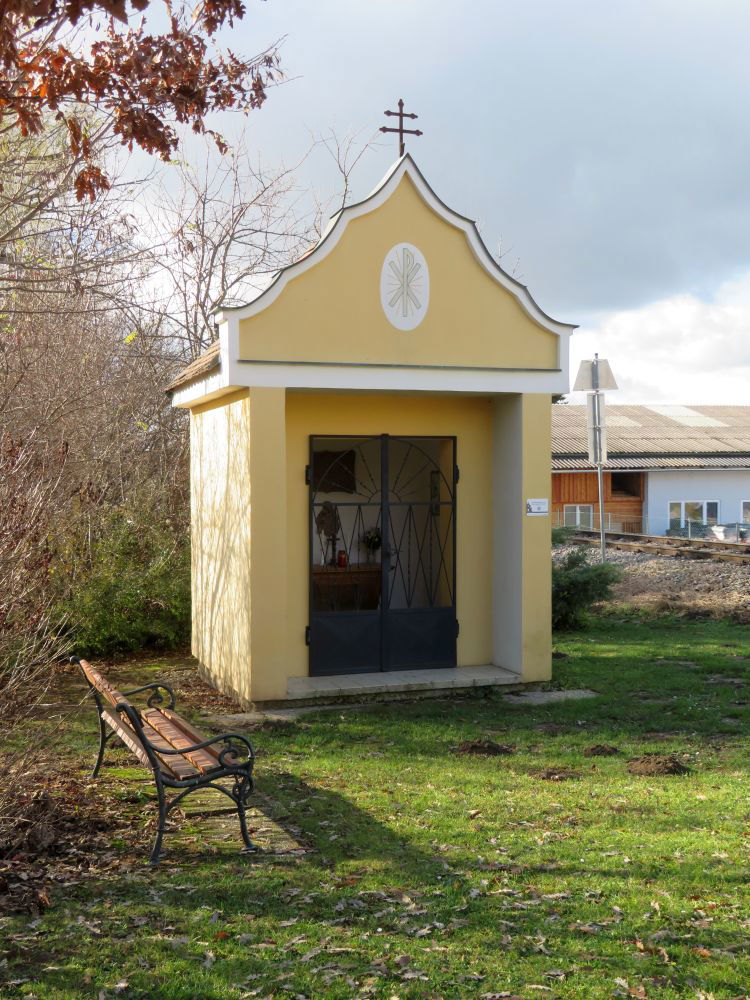Danach geht es, vorbei an einer Kapelle und der Bahntrasse...