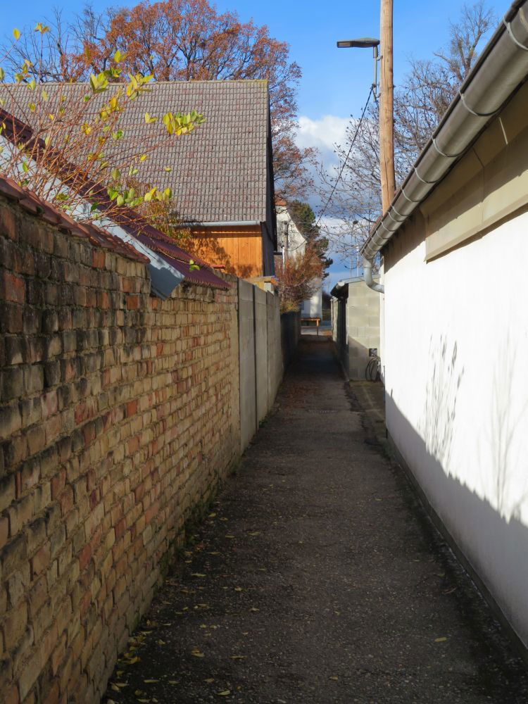 Nach einem Links-Rechts-Knick bei der Bäckergasse gelange ich durch ein schmales Gässchen hindurch...